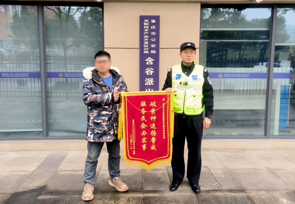 2024年12月13日,成都市某建筑劳务有限责任公司向含谷派出所赠送一面印有“服务民企办实事,破案神速扬警威”字样的锦旗,感谢派出所民警神速破案,为企业挽回了经济损失。