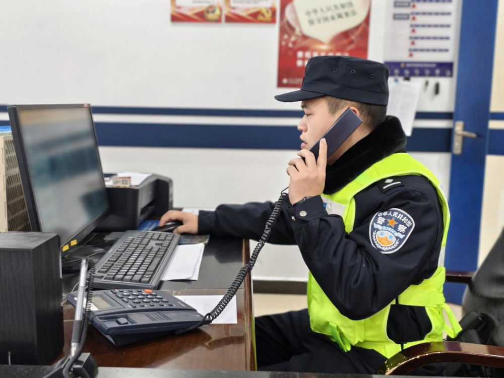 ▲民警黄熙政询问郭先生情况